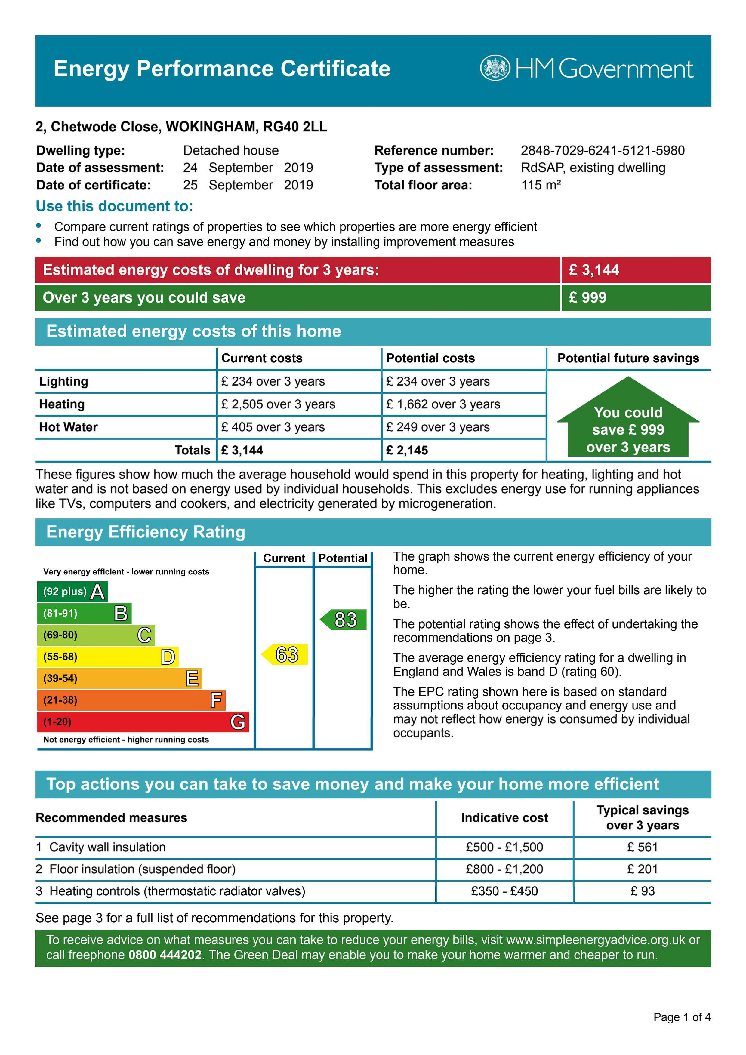 Energy Efficiency Rating: D62 – Main house